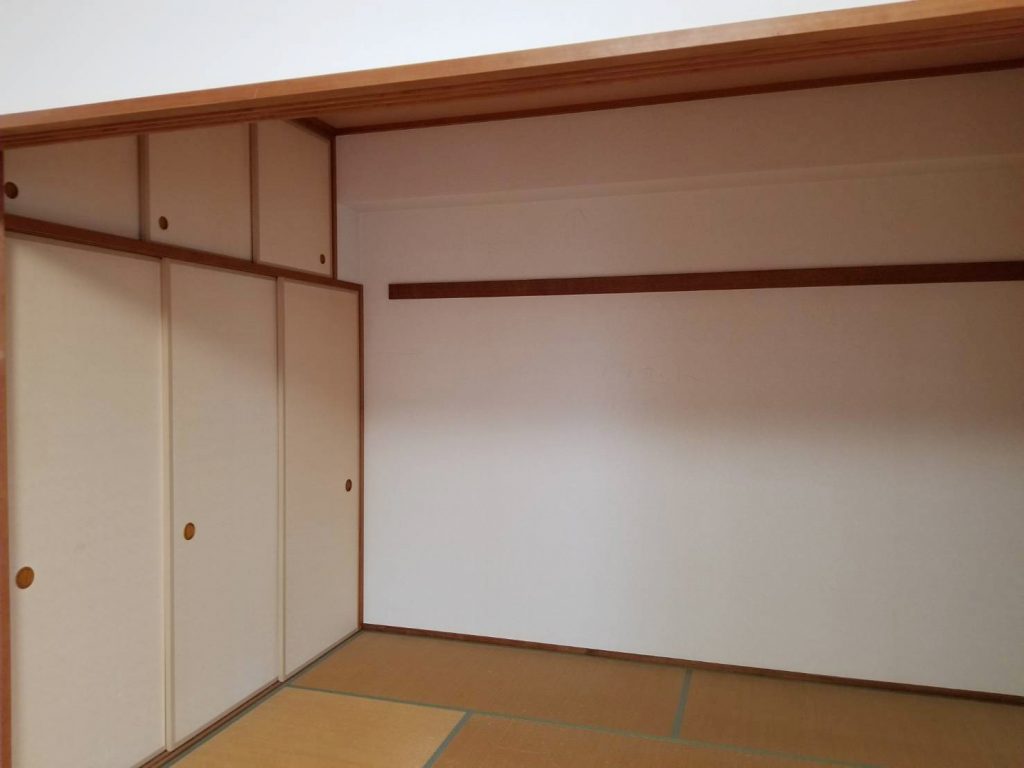 和室のクロス貼替えです。全体はオフホワイトで貼り、1面のみ朱色でアクセントにしました。